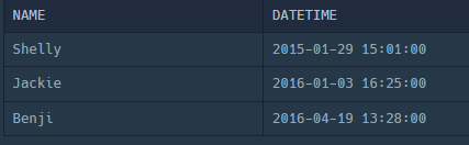 SELECT A.NAME, A.DATETIME